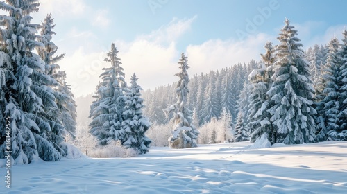 Naklejka premium Winter holiday magic with snowy landscape and evergreen trees