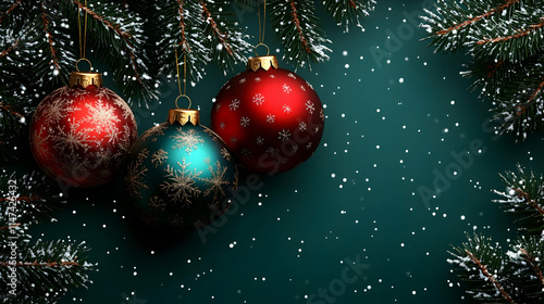 © Siasart, Naklejka premium Winter Holiday Ornaments Decorate Festive Tree