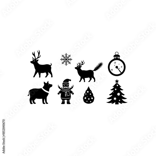 Fototapeta premium Winter holiday silhouettes isolated on transparent background