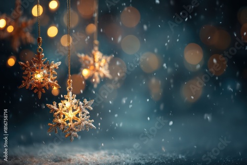 © Igor, Obraz premium Winter Holidays Background: Star Bokeh and Falling Snow