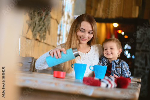 © areporter, Fototapeta premium Winter holidays mom with a child