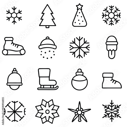 © MdRakibur, Naklejka premium Winter Icon Set, Snow, Holiday, Weather & Christmas Line Icons in Minimal Style