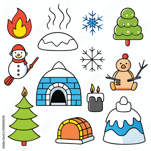 Obraz premium Winter Icon Set, Snow, Holiday, Weather & Christmas Line Icons in Minimal Style