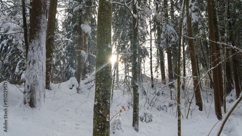 Fototapeta premium Winter in a forest in the German Alps in the bavarian Allgäu