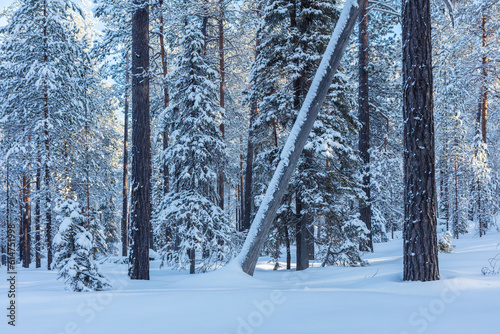 Fototapeta premium Winter in Finland; snow covered boreal forest in Oulanka National Park