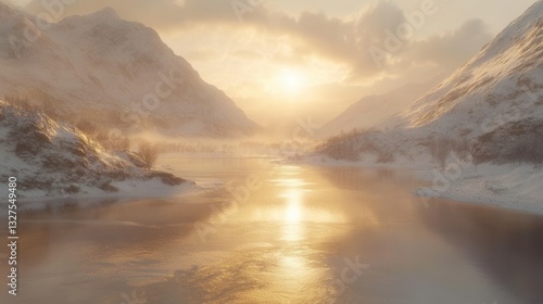 © StarzDream, Obraz premium Winter Lakes Under Bright Sunlight with Soft Reflections