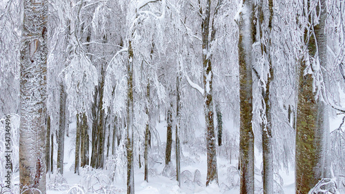 Obraz premium Winter Landscape, Footpath through Beech Tree Forest Covered by Snow