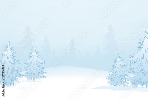 © Nico, Naklejka premium Winter Landscape Gradient: A snowy landscape with a sky transitioning from crisp white to pale blue, accented by snow-covered trees