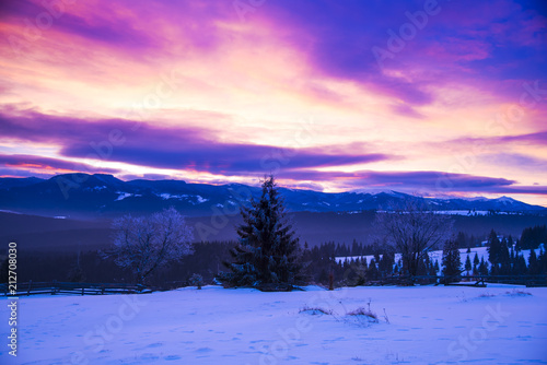 © somra, Obraz premium Winter landscape in Carpathian Mountains at the sunrise