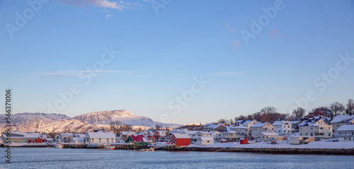 © Gunnar E Nilsen, Fototapeta premium Winter landscape in Sørbyen - Brønnøysund city, Helgeland, Norway, Europe