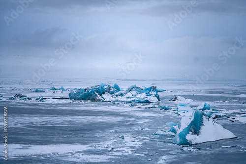 Obraz premium Winter landscape of jokulsarlon glacier lagoon in the south part of Iceland.