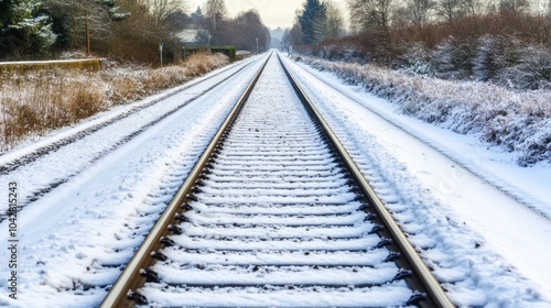 © sujitea, Fototapeta premium Winter Landscape of Snowy Railway Tracks