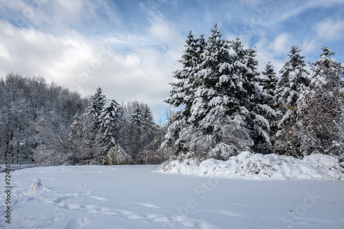 © Stoyan Haytov, Fototapeta premium Winter Landscape of South Park in city of Sofia, Bulgaria