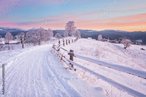© Ryzhkov Oleksandr, Obraz premium Winter landscape. road covered with snow