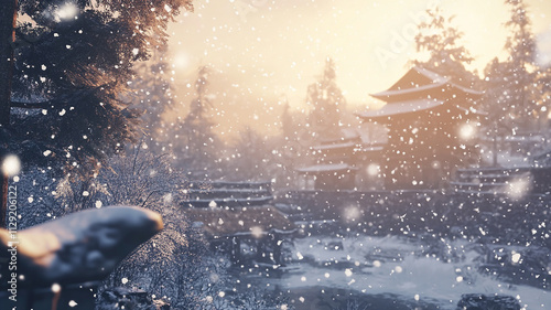 © FLOATING HEART, Fototapeta premium Winter landscape showing snow fall and large trees, Arctic Landscape with Snow covered trees in a winter season, winter morning snowy view with melting snow.