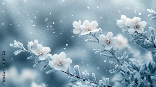 Fototapeta premium Winter Landscape Snowflakes Minimalist Photography Soft Light Bokeh Effect...