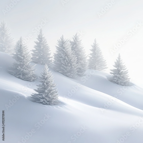 © Robi, Naklejka premium Winter landscape snowy pine trees white forest minimalist scene serene atmosphere soft light