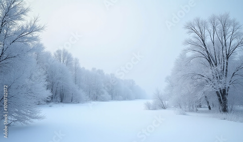 © Galeno, Fototapeta premium winter landscape snowy scenery bare trees created artificial intelligence serene calming visual effect