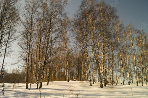 © ovcerleonid, Fototapeta premium Winter landscape with birch by grove