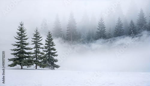 © Iveta, Naklejka premium winter landscape with fir trees and fog