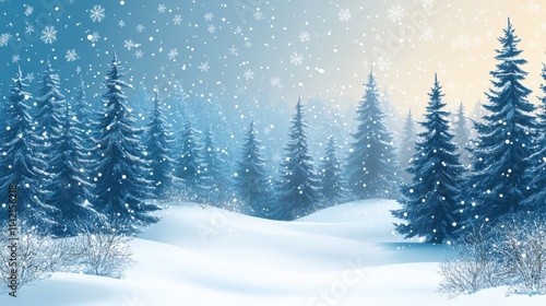 © NhV, Naklejka premium winter landscape with fir trees and snowflakes copy space