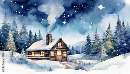 © Spling, Naklejka premium winter landscape with house