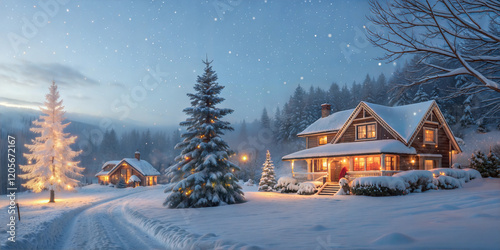 © udoysaha, Fototapeta premium winter landscape with house
