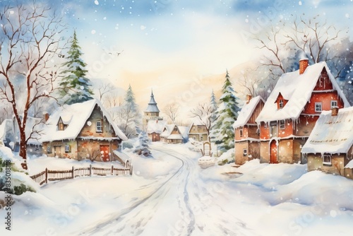 © Dzikrul Husnani, Fototapeta premium winter landscape with house and snow, generative ai