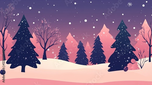 Naklejka premium Winter landscape with pine trees and snowfall