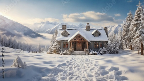 Naklejka premium Winter Landscape with Snow and Trees
