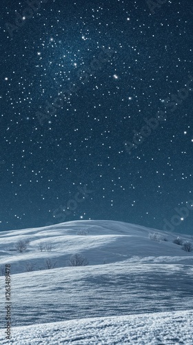 © NpicArt, Naklejka premium Winter landscape with snow covered hills under a starry sky