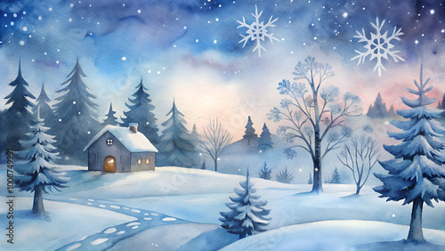 © Svetlana, Naklejka premium winter landscape with snow covered house
