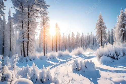 © Vani, Naklejka premium winter landscape with snow covered trees