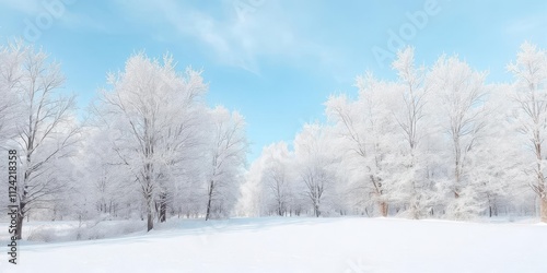 Fototapeta premium Winter landscape with snow-covered trees and a clear blue sky in the background, outdoor, frosty, frost
