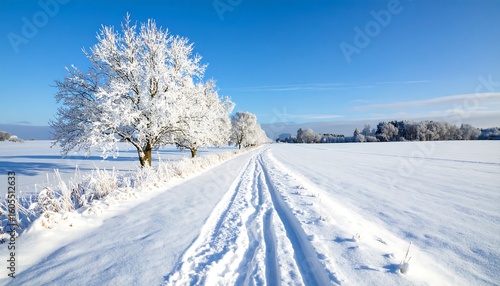 © Fauzi, Fototapeta premium Winter landscape with snow-covered trees and path