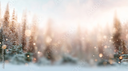 © fotofabrika, Obraz premium Winter landscape with snow-covered trees and soft light during sunrise or sunset