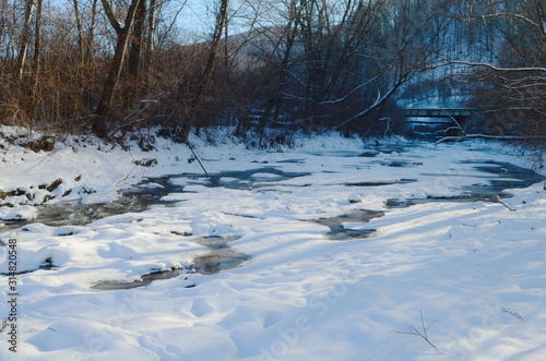 © maria, Fototapeta premium Winter landscape with the river and in frosty day