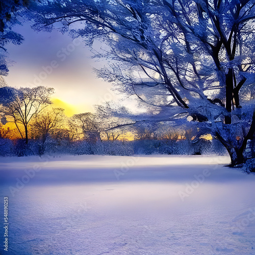 © Golden Alif Arts, Naklejka premium winter landscape with trees and snow
