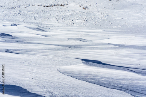Fototapeta premium Winter landscape with wind sculpted patterns on snow- wind effect