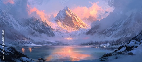 © Pianart, Fototapeta premium Winter Mountain Lake Sunrise