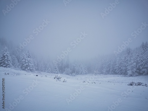 Fototapeta premium winter mountain landscape with snowy trees and snow