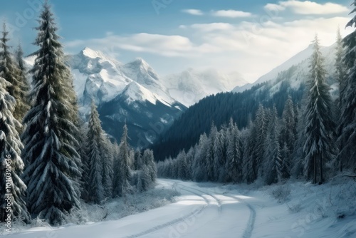 © Rawpixel.com, Fototapeta premium Winter mountains forest landscape outdoors.