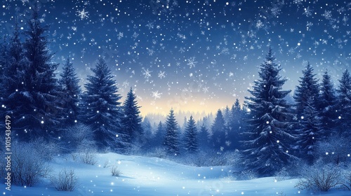 © Іван Ніколов, Fototapeta premium winter night landscape. snowy forest and fir branches.