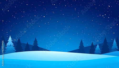 Naklejka premium Winter night landscape with snow-covered hills and trees.