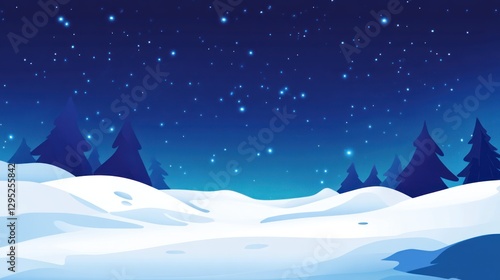© Entri, Fototapeta premium Winter night snowy landscape illustration