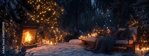 Obraz premium Winter Night with Fireplace and Lights
