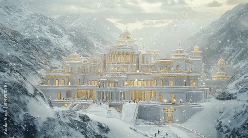 © Thymezz, Fototapeta premium Winter Palace Amidst Snowy Mountains A Majestic Scene