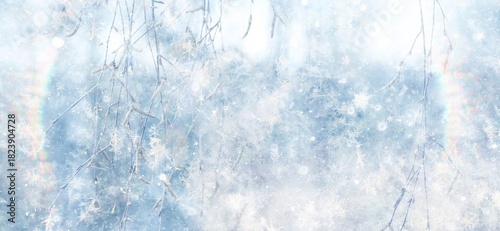 Naklejka premium Winter park, abstract background, snow, blurred trees, festive backdrop