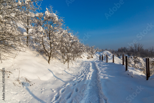 © Alicja Wójcik, Fototapeta premium Winter path against the blue sky
