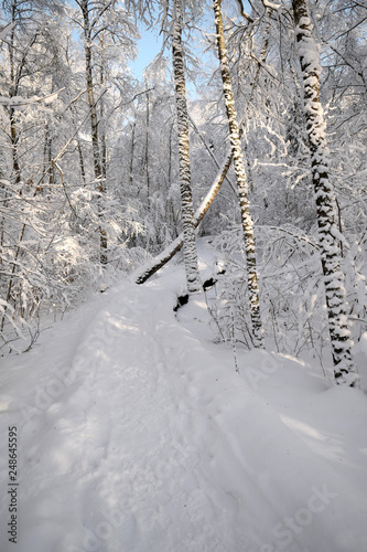 © VJ, Fototapeta premium Winter path going through frozen forest